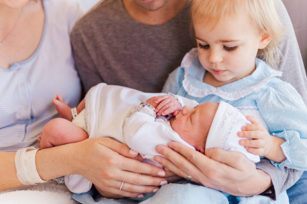 One of my favorite things about fresh 48 sessions is watching big brothers and sisters meeting and interreacting with their sweet new sibling! Emma clearly though of this sweet boy as HER baby! It was so cute watching her kiss his head and settle the blanket over his body!