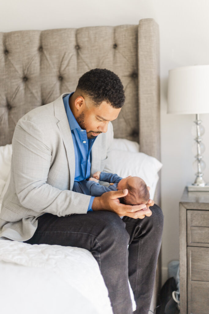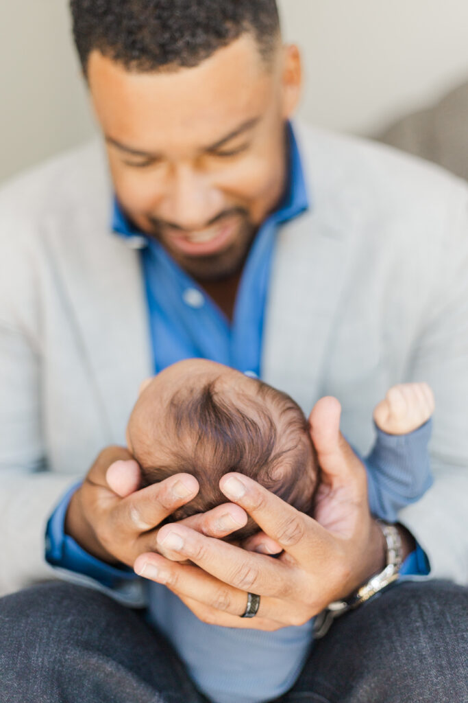 This newborn session wasn’t just about documenting a new baby boy—it was about capturing the beginning of a bond that already felt strong, steady, and safe.